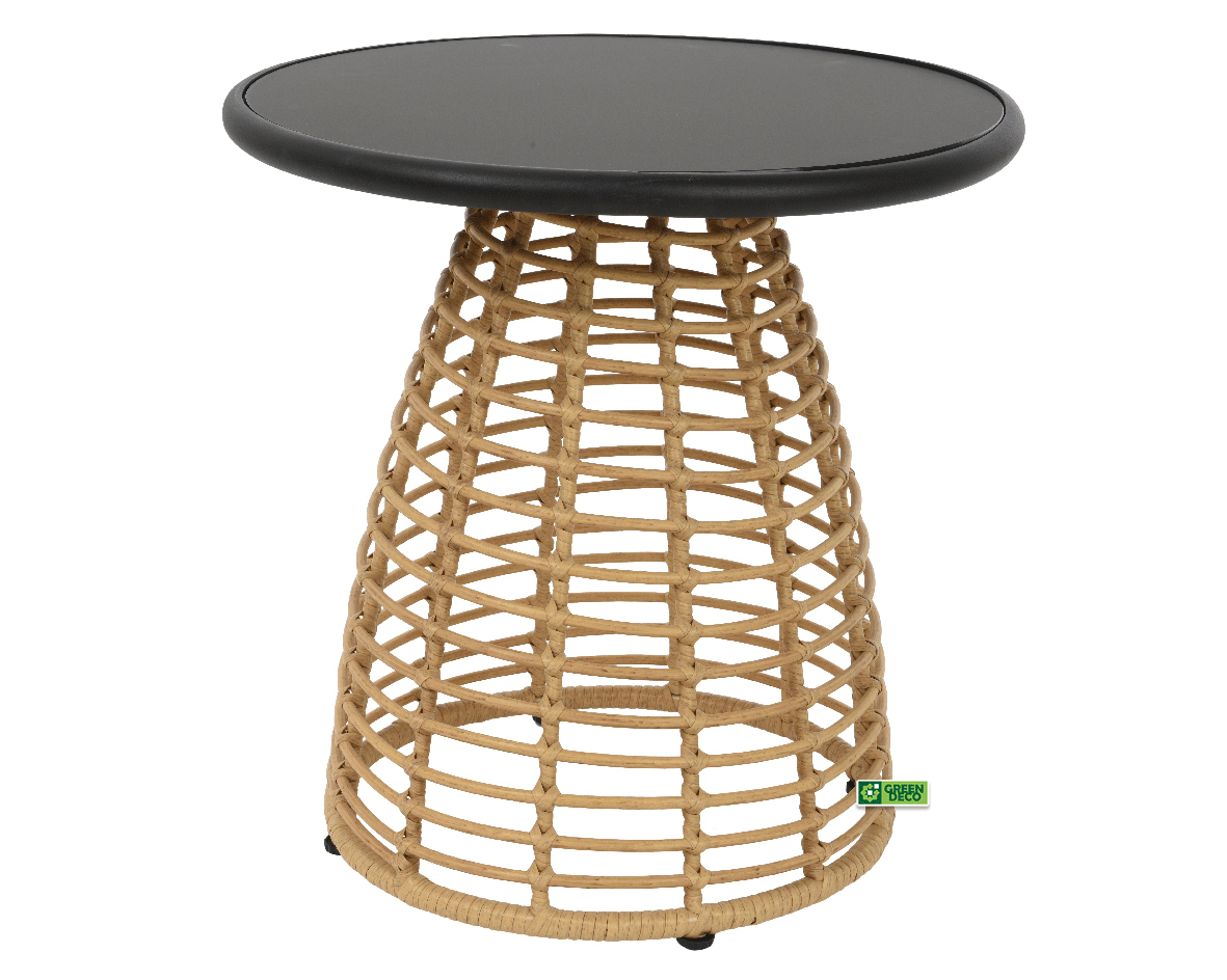 Стол "Лиссабон" д/улицы, сада ( 50x50x50 см), каркас железо с полимерн.оплетением, столешница из закал.стекла толщ.5мм