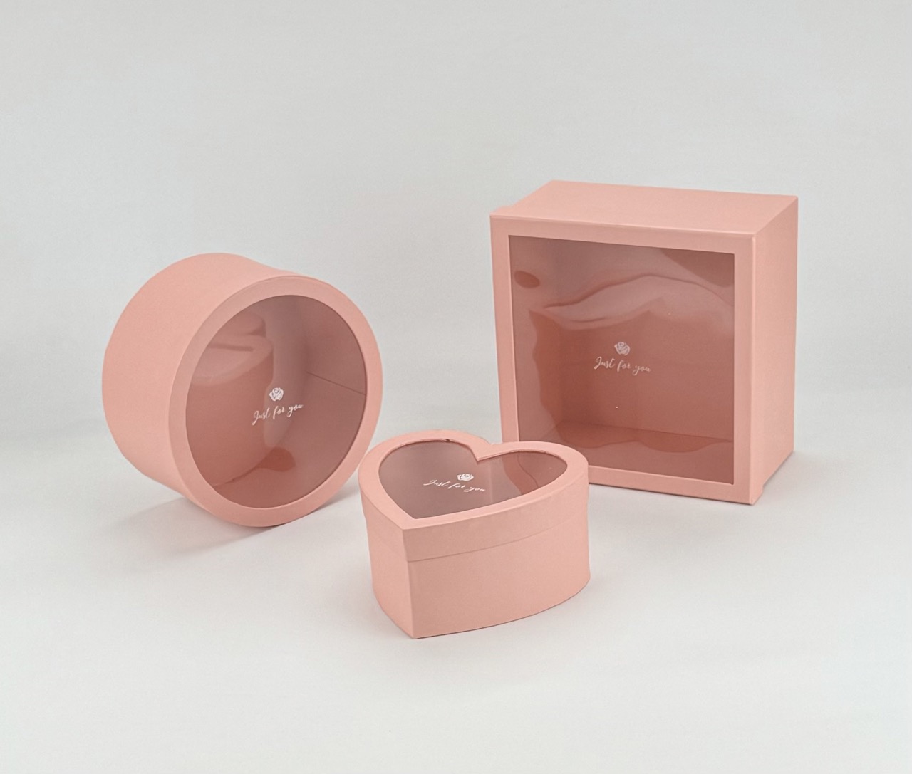 Набор коробок для декора цветов 26x26x13.5cм, 24x12cм, 20.5x19.5x10.5cм, 3шт., цвет светло-розовый, арт. W3809