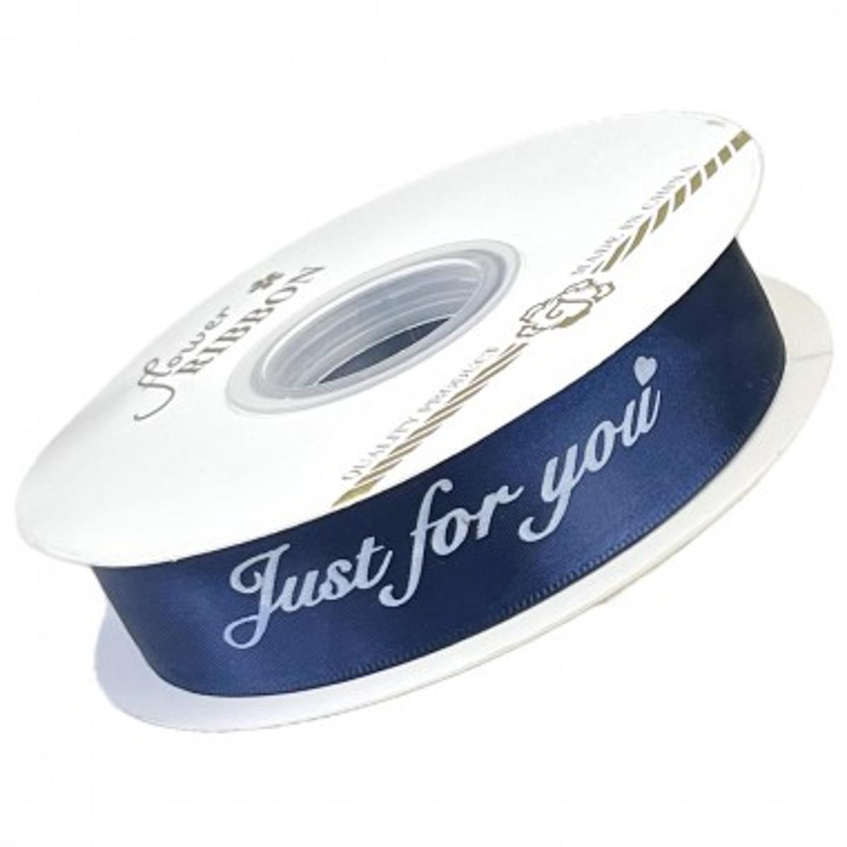 Лента атласная PREMIUM "Для тебя", 25мм*40ярд, цвет темно-синий