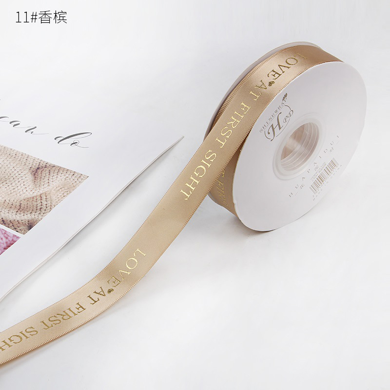 Лента атласная PREMIUM "ЛЮБОВЬ С ПЕРВОГО ВЗГЛЯДА", 25мм*41м цвет 11 шампанское, арт. 232/11