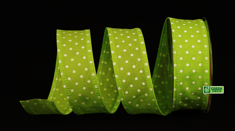 Лента флористическая для декора ГОРОШЕК (40мм х 50м), текстиль, арт.61581