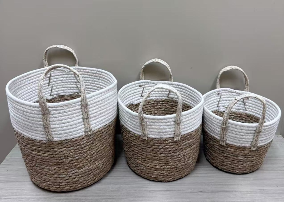 Набор корзин плетеных из рогоза, 3 шт/наб, 34х32, 31х29, 29х26cм, арт. JC2515