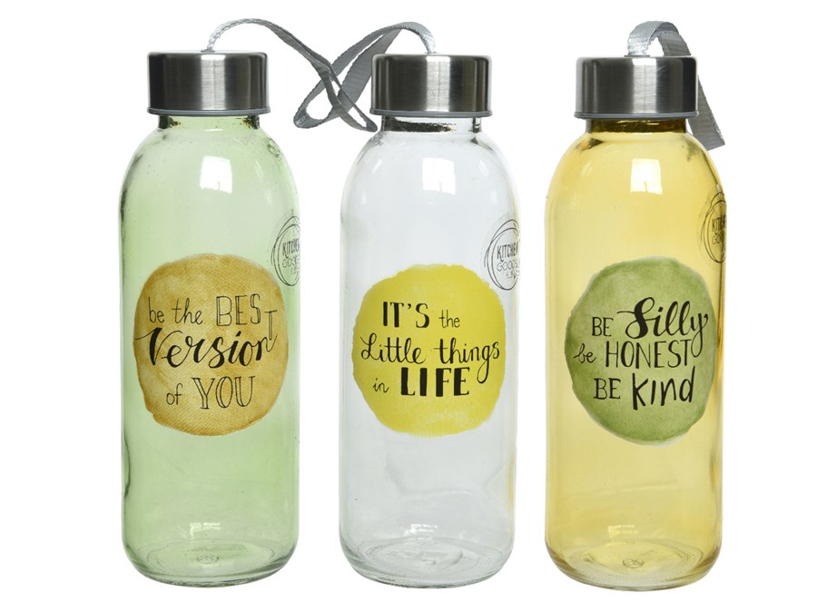 Бутылка для напитков из стекла с крышкой, асс/3, д.6,4х19 см, арт. 825560