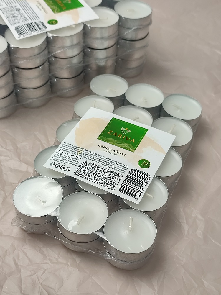 Свеча чайная в гильзе, белый, 30шт/упак